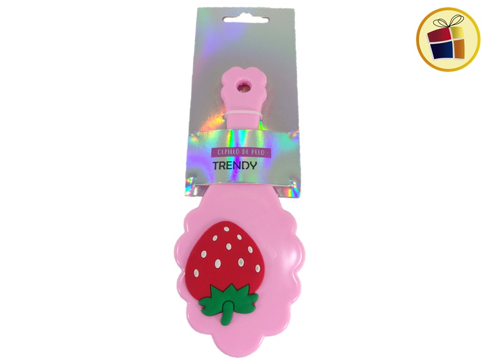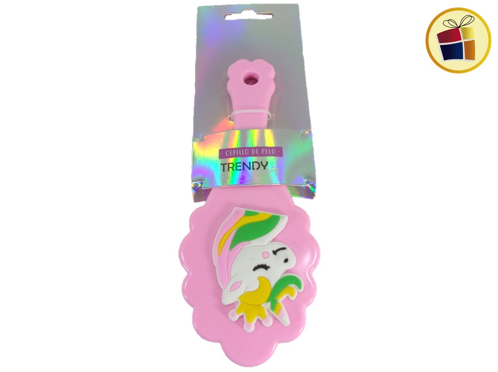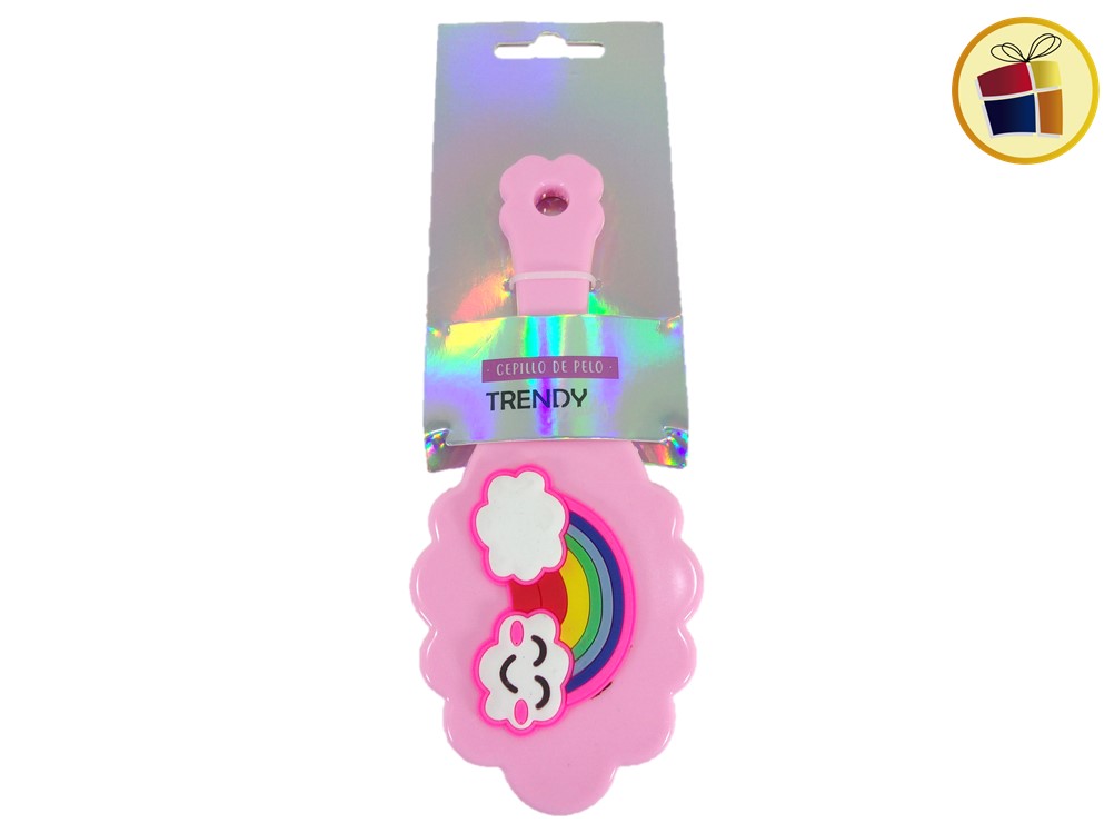 Cepillo para cabello infantil forma flor, con surtido de aplique en goma.