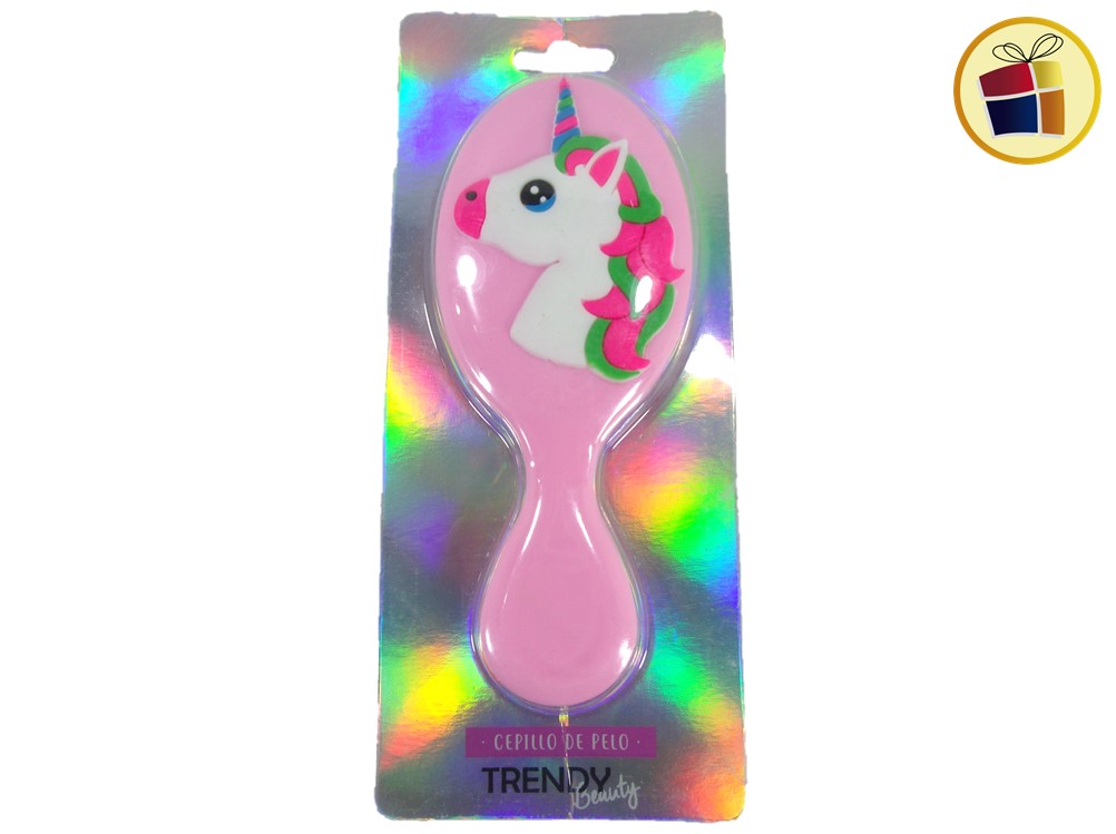 Cepillo para cabello infantil oval con aplique surtido en goma.