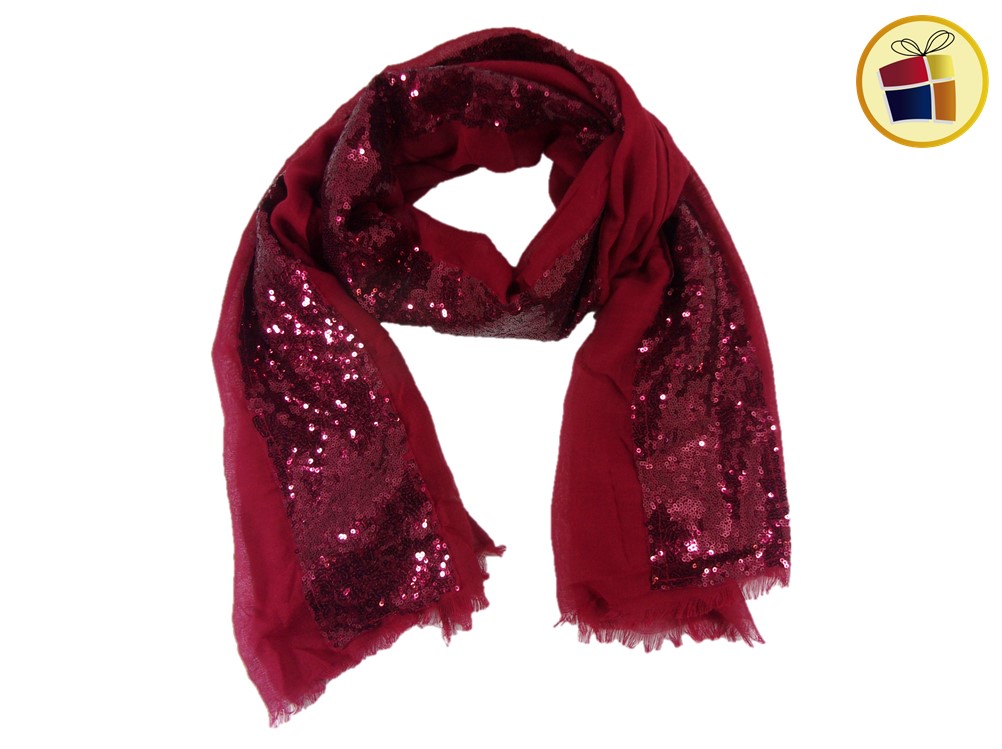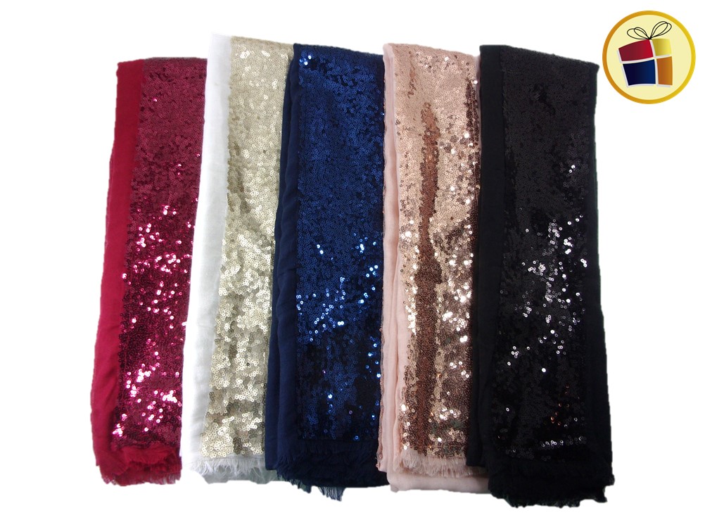 Chalina para dama rectangular con lentejuelas en uno de los lados.