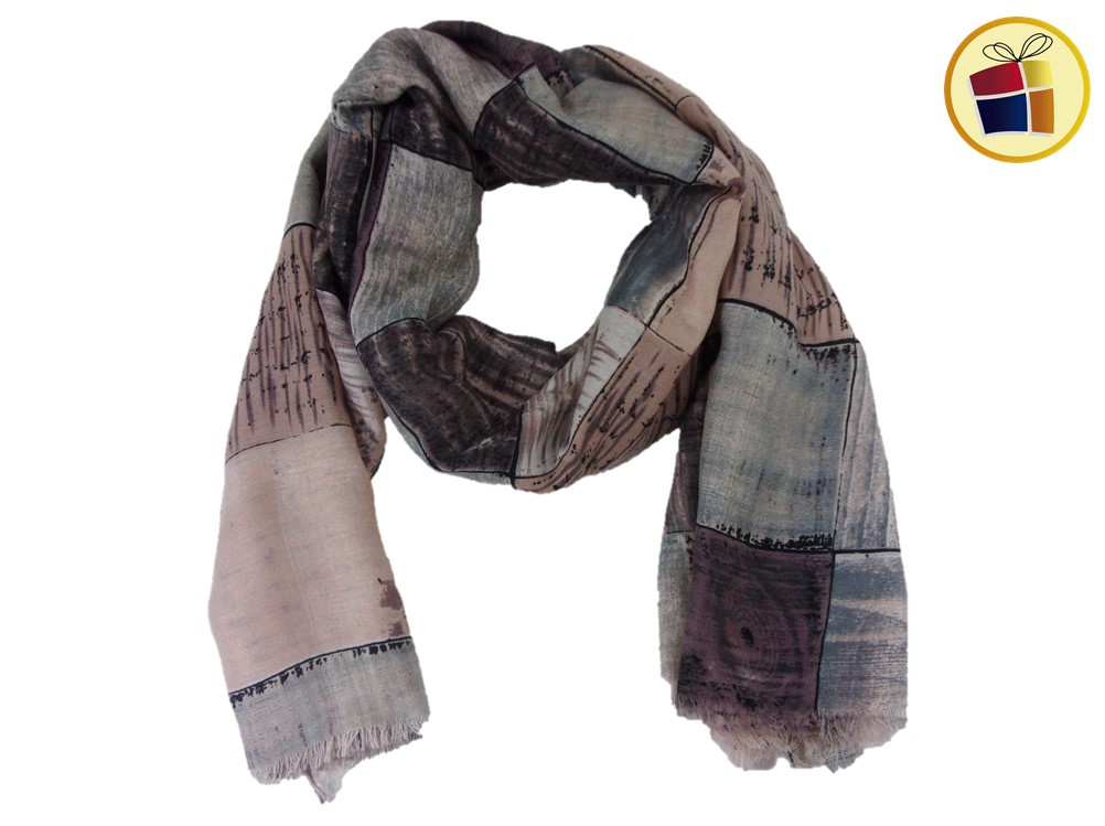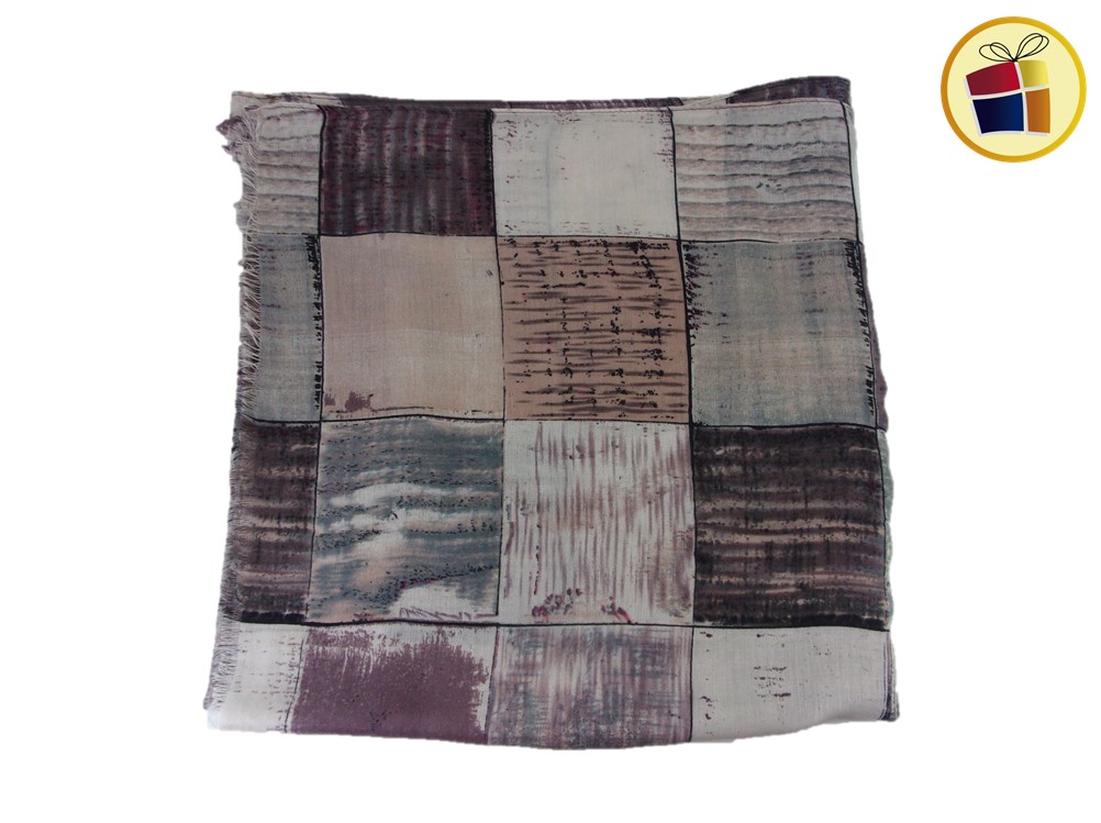 Chalina para dama rectangular gruesa estampada estilo madera en cuadrados.