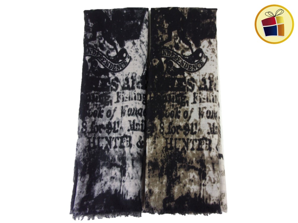 Chalina para dama rectangular gresa estampada con letras.