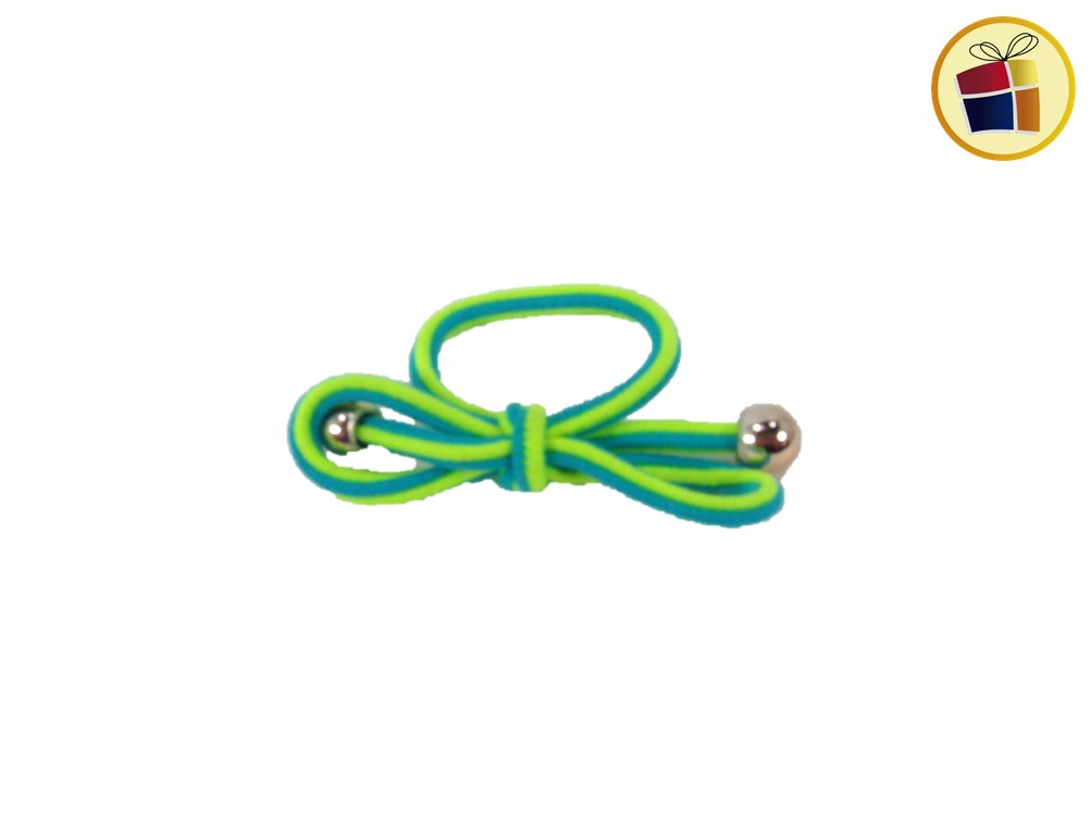 Gogo cordon rayado forma oño cor pelotitas dorada en la terminacion.