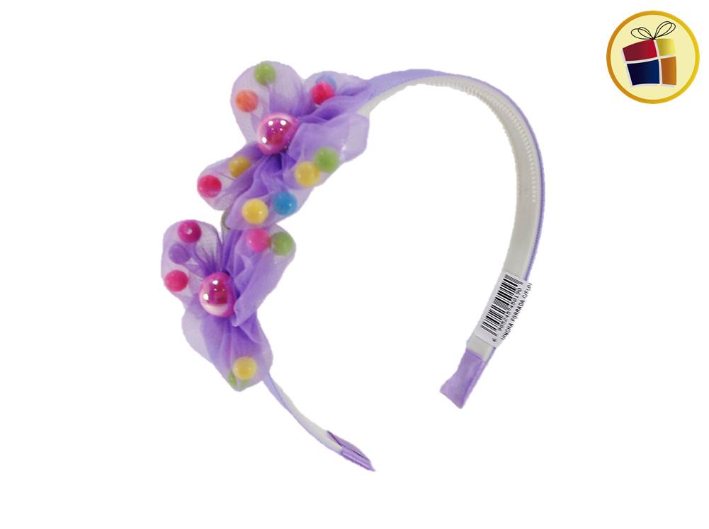 VINCHA FORRADA CON FLOR DE GASA Y PERLAS DE COLORES
