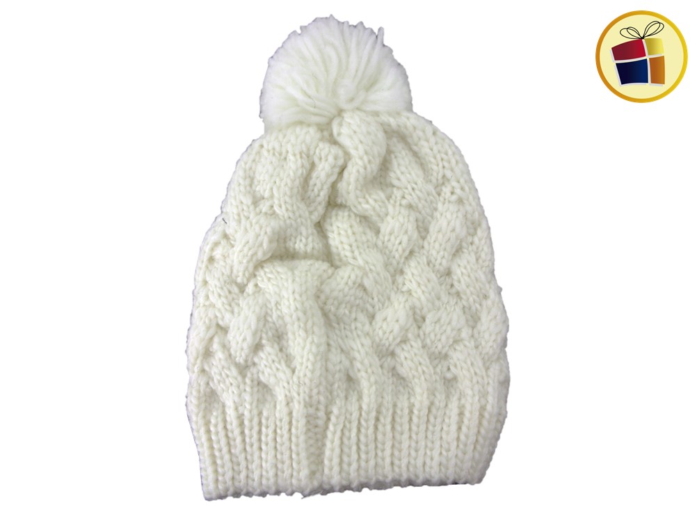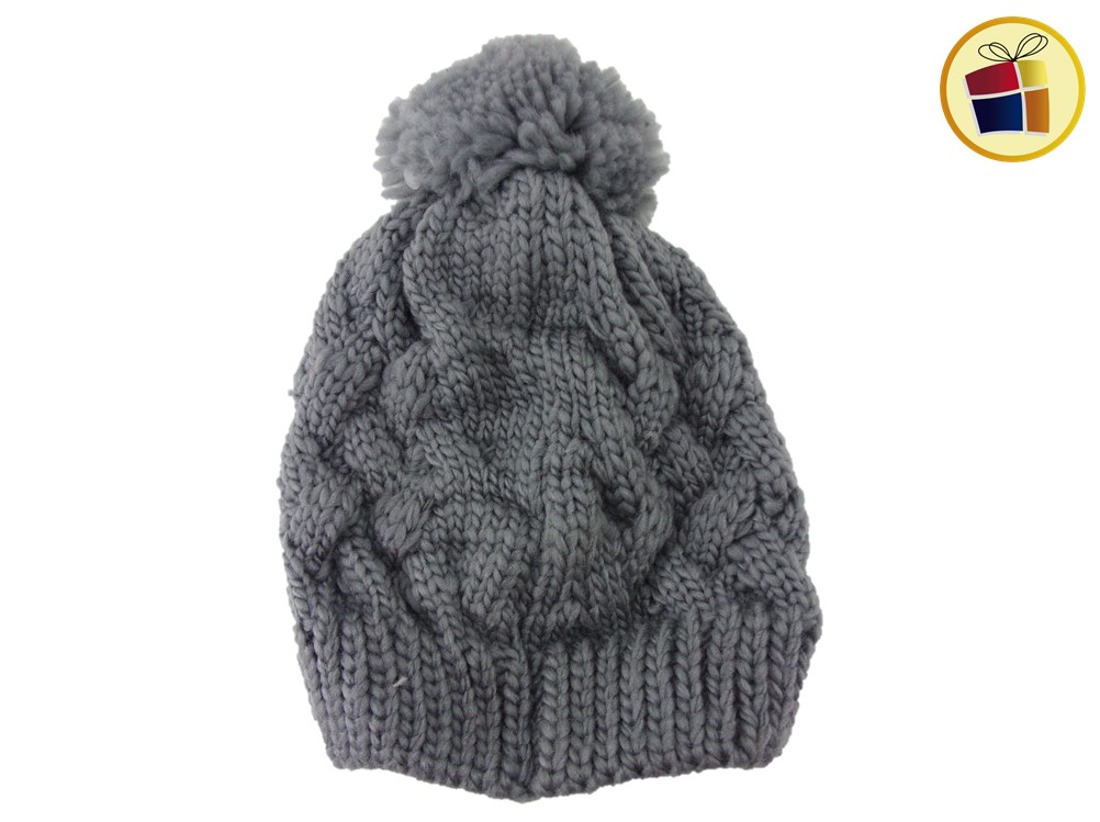 Gorro para dama de lana grueso a crochett con pompon.