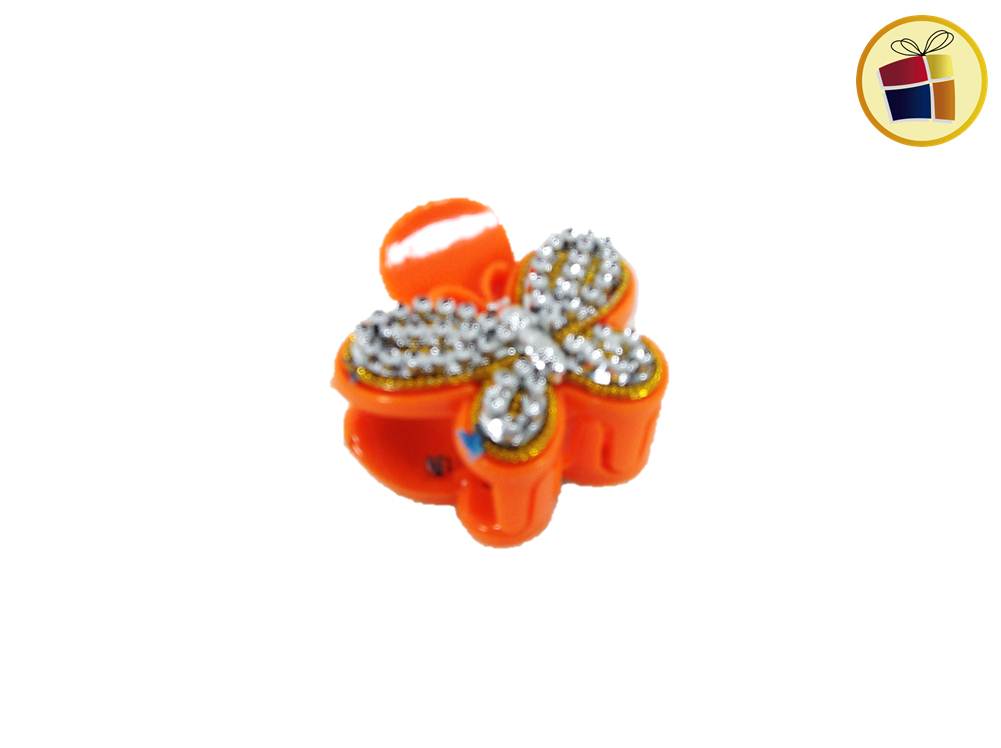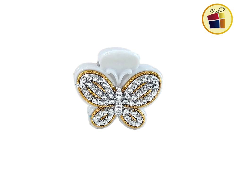 Broche para cabello mediano con stras y forma de mariposa.