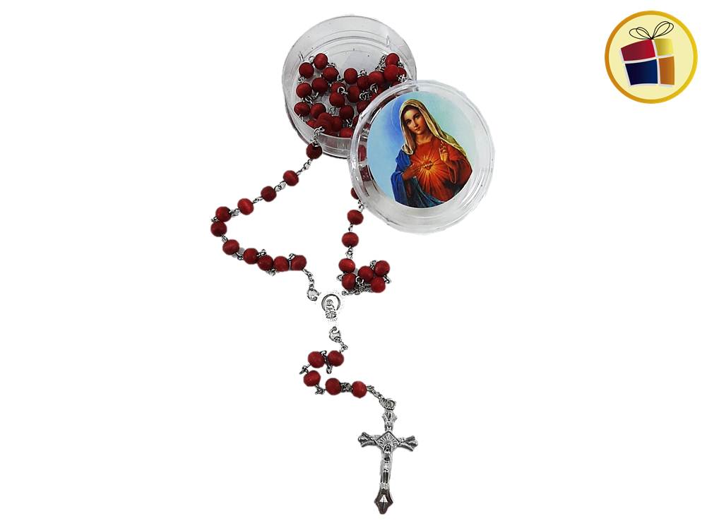 Material : rosario de madera y metal, estuche de plastico acrilico