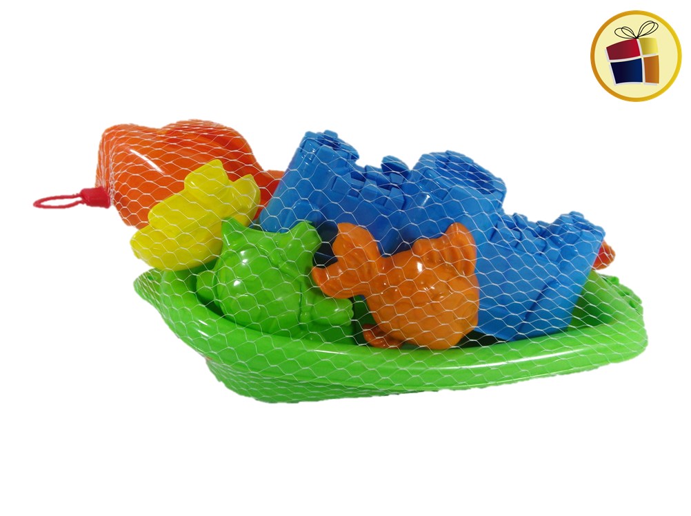 Set playa incluye Barco + castillo + pala + rastrillo + 4 moldes variado en colores