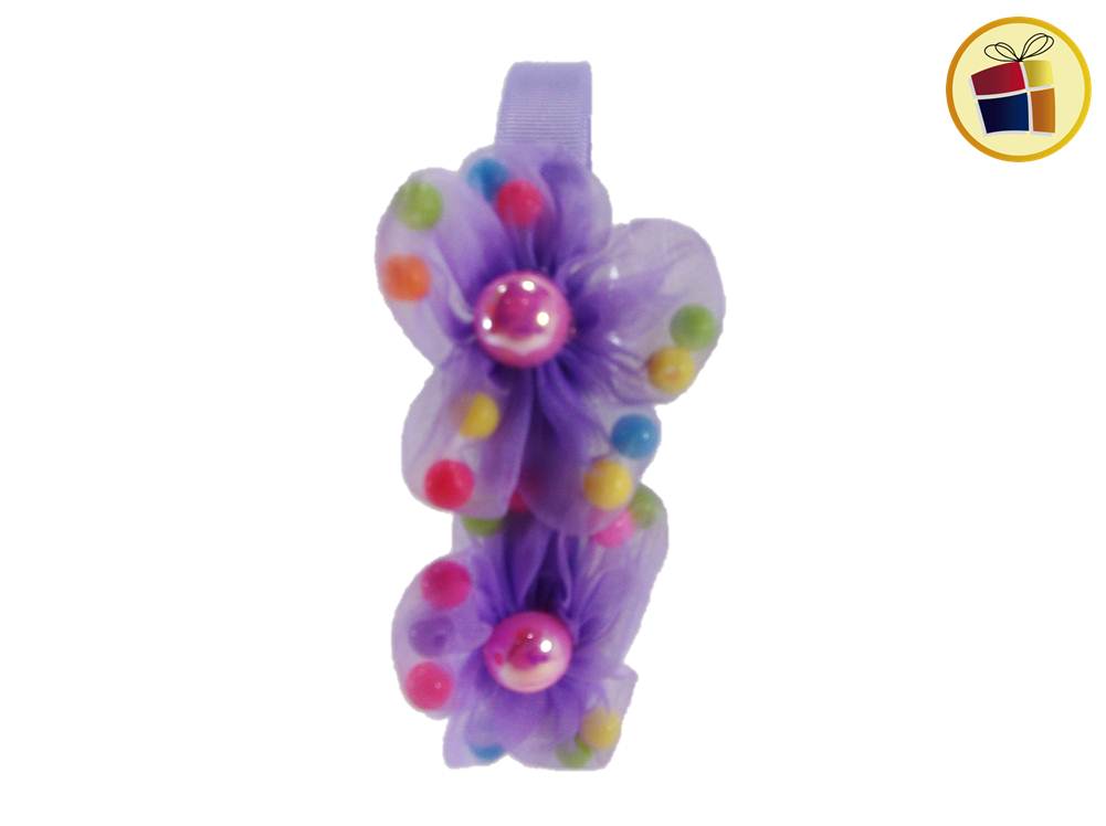 VINCHA FORRADA CON FLOR DE GASA Y PERLAS DE COLORES