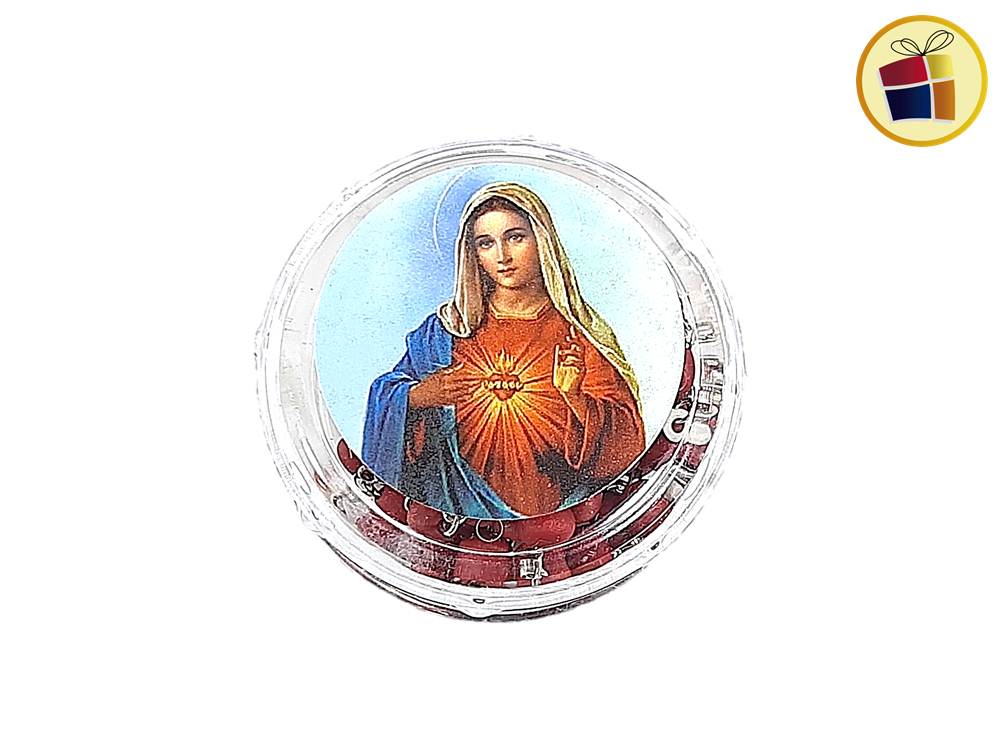 Material : rosario de madera y metal, estuche de plastico acrilico